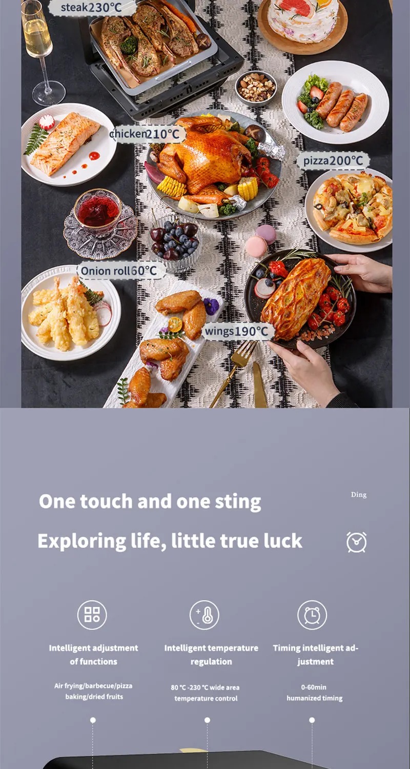 10L Large Capacity Electric Air Fryers Oil-free Automatic Household Kitchen 360°Baking Convection Oven Deep Fryer Without Oil