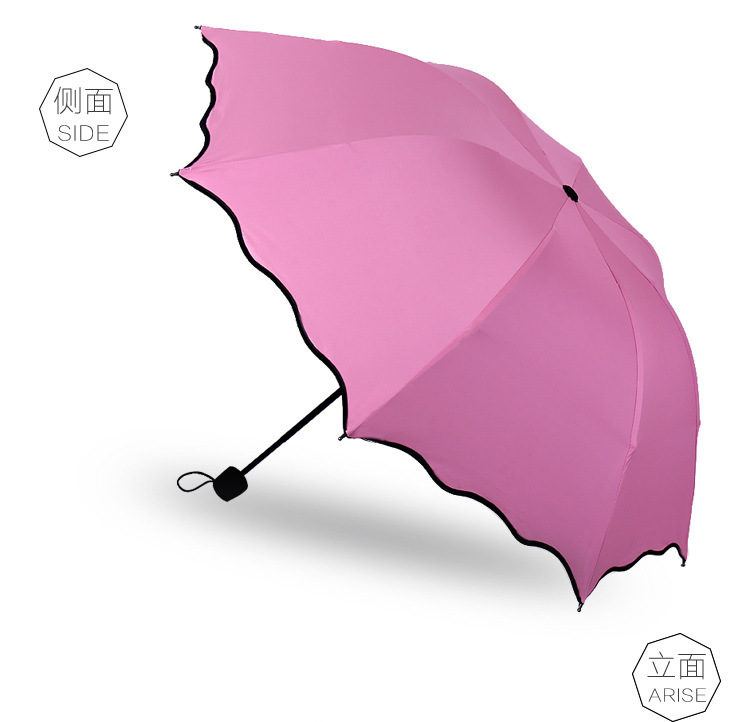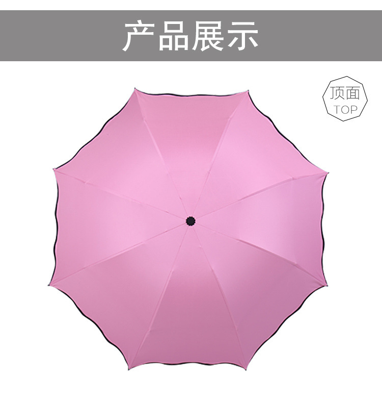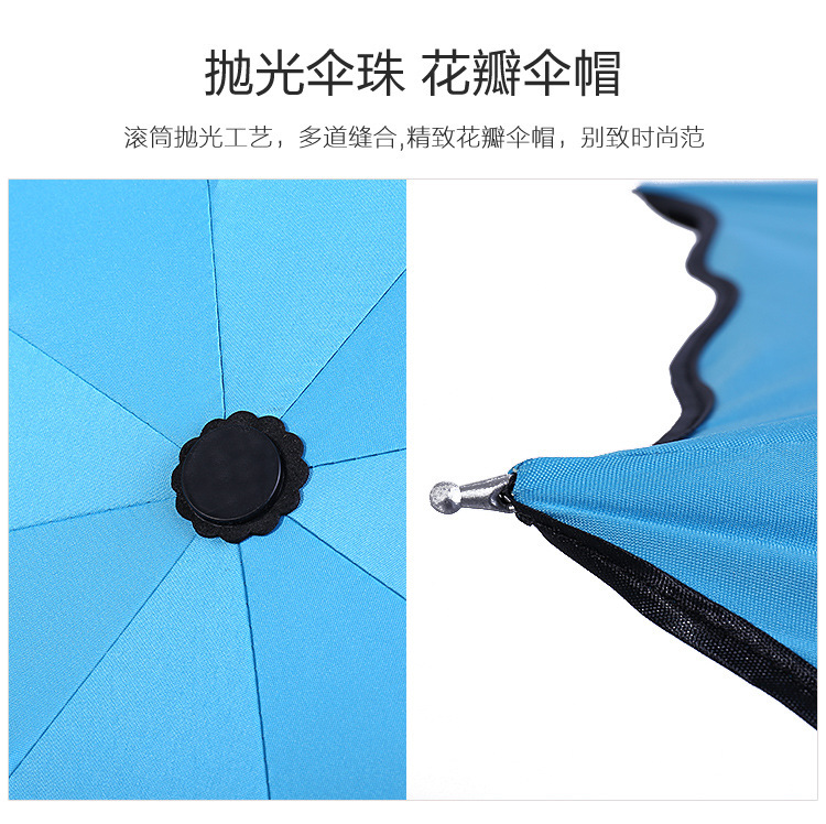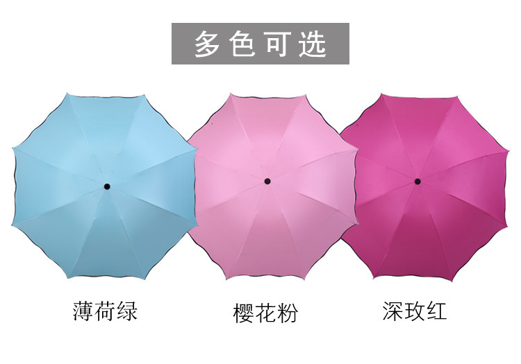 LS03 Creative Anti-UV Sunshade Umbrella Three-Fold Lotus Leaf Edge Watercolor Blooms Black Glue Customizable Logo for Adults